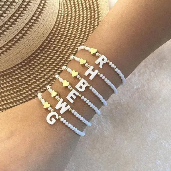 26 글자 화이트 쉘 구슬 팔찌 여성 금속 사랑 디자인 팔찌 쥬얼리 보석
