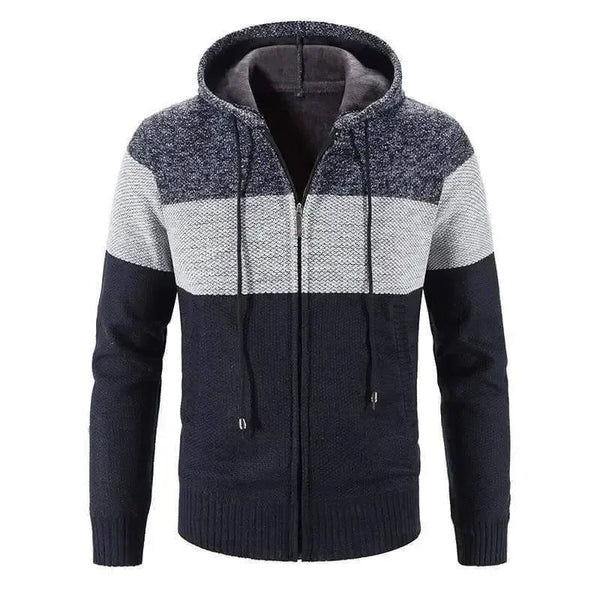 남성 스웨터 두꺼운 지퍼 울 스웨터 후드 스트라이프 코트
