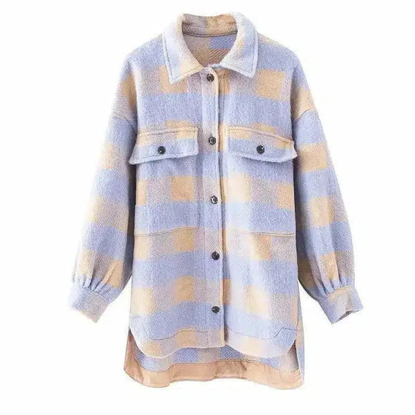 여성용 체크무늬 플리스 셔츠 재킷
