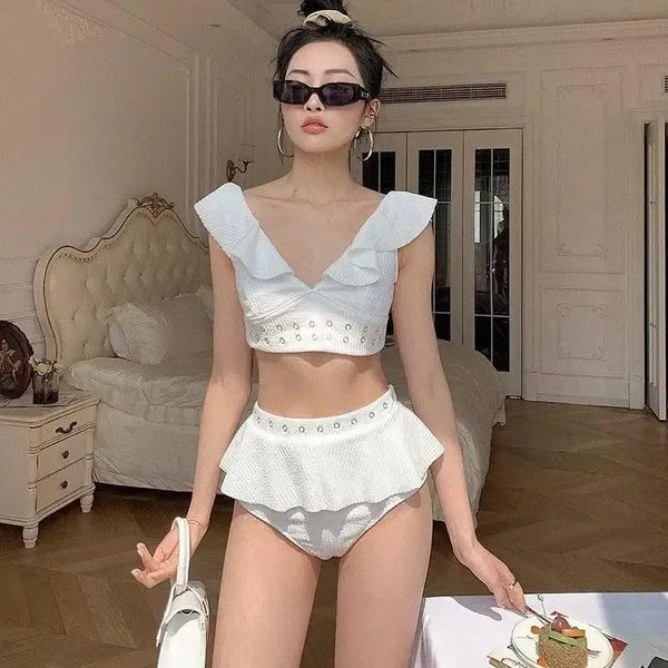 러플 비키니 개더링 백리스 하이웨이스트 스플릿
