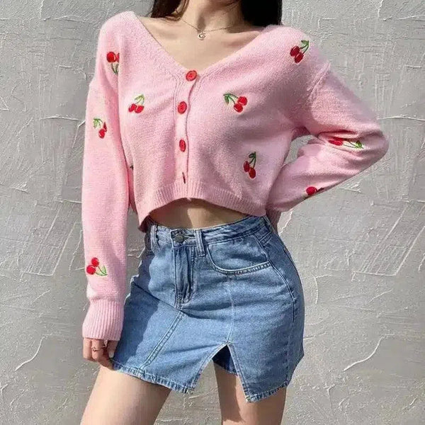 - 디자인 디테일: 앞면 버튼 여밈, 자수 체리 모티브