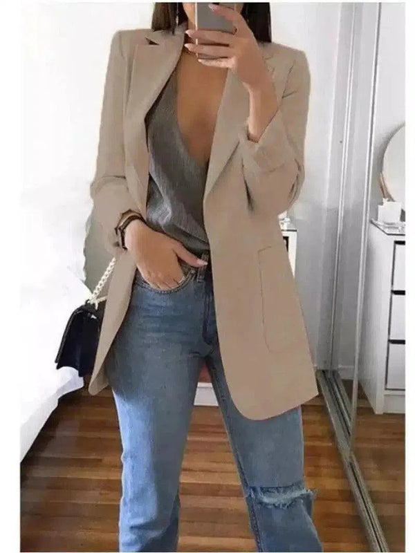 여성용 테일러드 핏 블레이저와 캐주얼 진 콤보