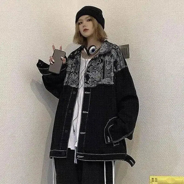 포켓이 달린 스타일리시 오버사이즈 데님 재킷