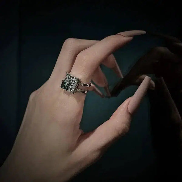 빈티지 실버 스퀘어 다크 그린 다이아몬드 S925 스털링