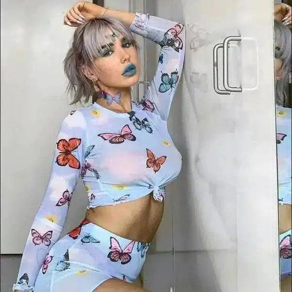- 의류 유형: 크롭탑과 미니 스커트 세트