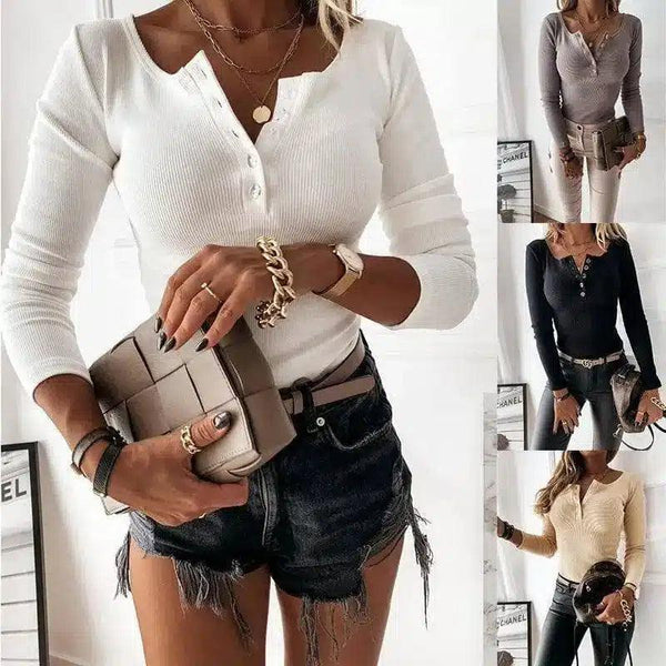 - 넥라인: 버튼 여밈이 있는 브이넥