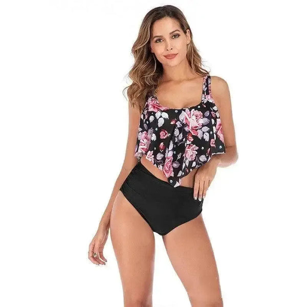 스플릿 수영복 여성 프린트 하이 웨이스트 비키니 러플