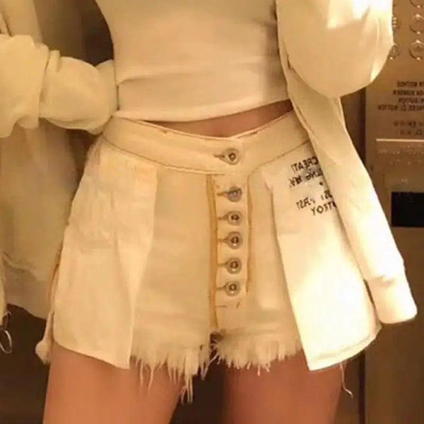 여름 새로운 그물 빨간 편지 단추 하이 웨이스트 양면 착용