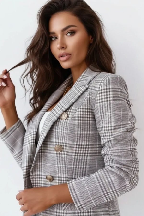 여성 가을 탑 루즈 롱 슬리브 체크 무늬 블레이저