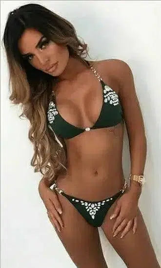 여성용 글리터 라인스톤 비키니 세트 푸시업 브라 홀터