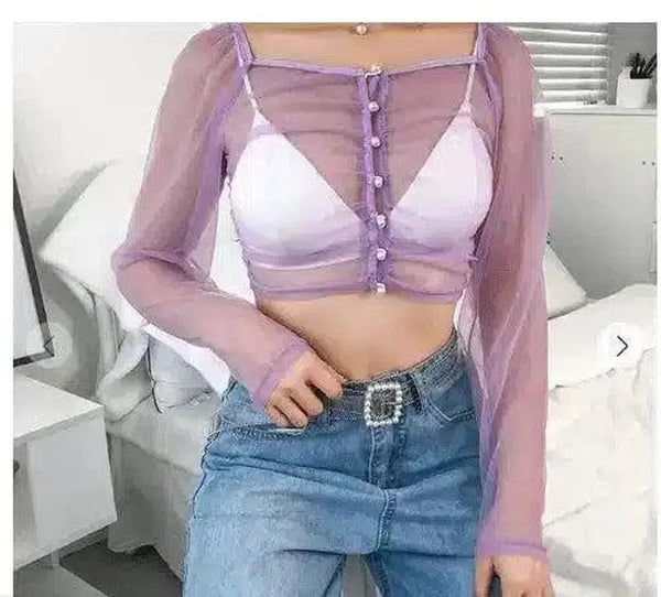 - 의류 유형: 시스루 오버레이 여성용 크롭 탑