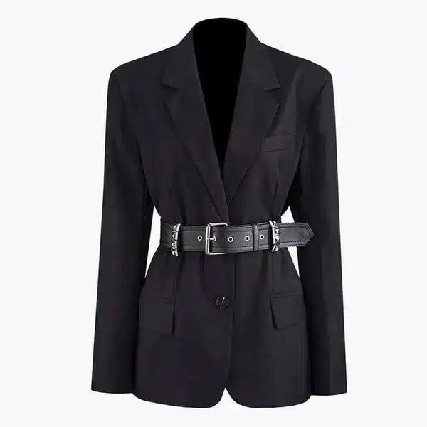 여성용 벨트 테일러드 블레이저 재킷