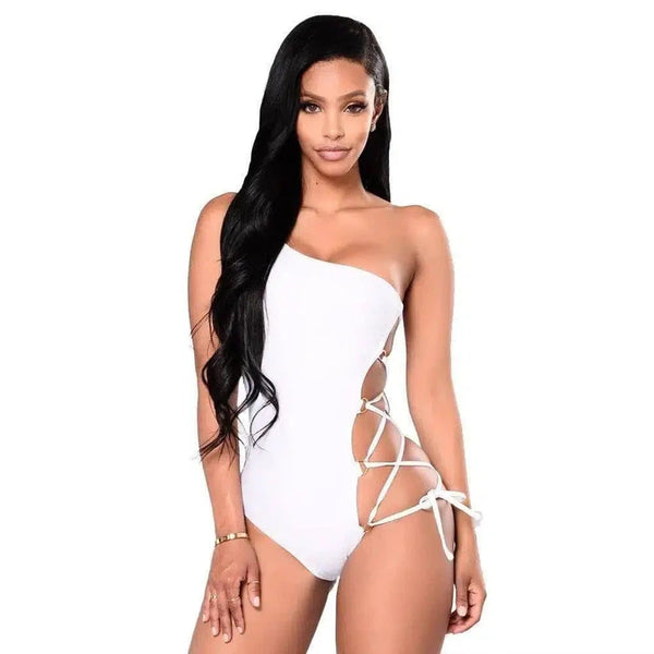 후프 크로스 스트랩 원숄더 비키니 수영복