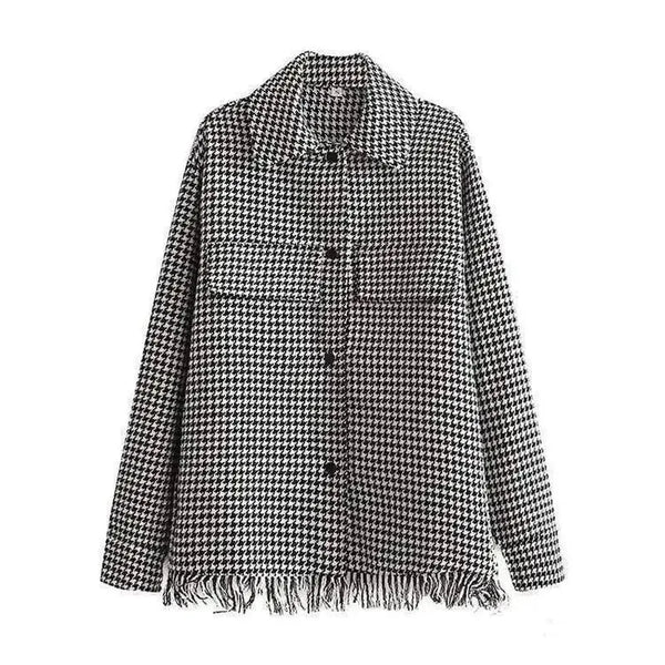 - 디자인 디테일: 프린지 밑단이 있는 하운드투스 패턴