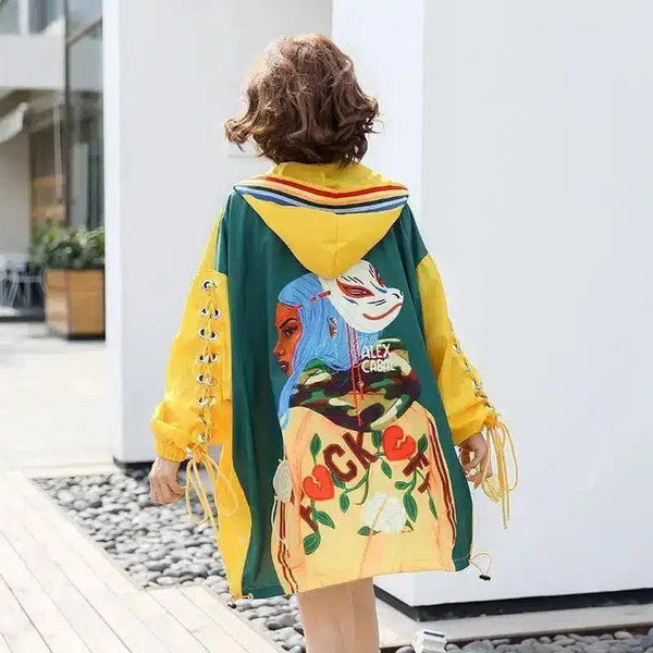 그래픽 프린트 & 레이스업 슬리브 후드 재킷