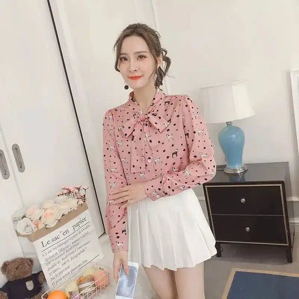 - 네크라인: 보타이 디테일이 있는 클래식 칼라