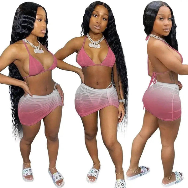 제품 설명: 패션 여름 그라데이션 비키니 홀터넥 수영복