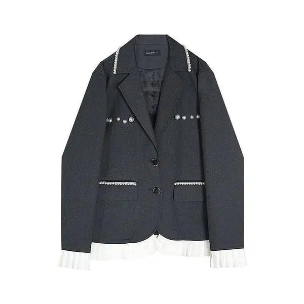 패션 레이디스 그레이 레이스 롱 슬리브 루즈 재킷