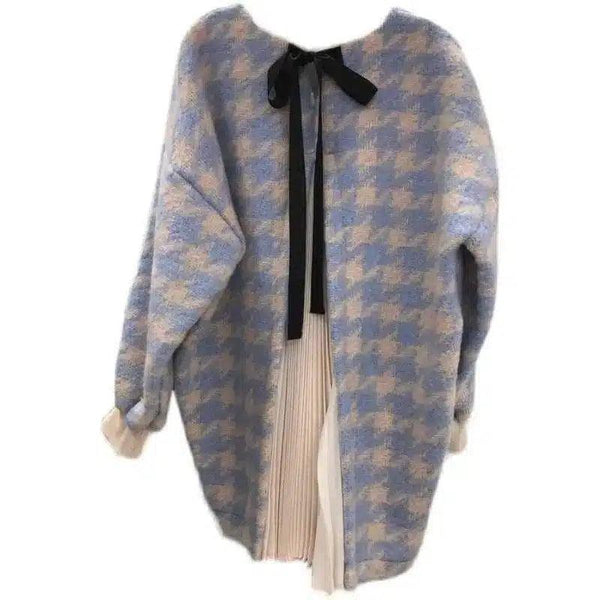 패션 플리츠 컬러 매칭 스티치 루즈 보타이 레이스