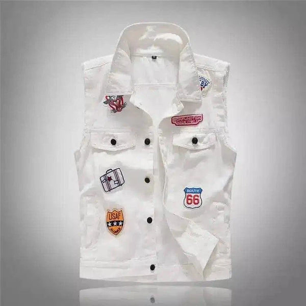 화이트 데님 베스트 데님 베스트 퍼스널 패치 데님 베스트