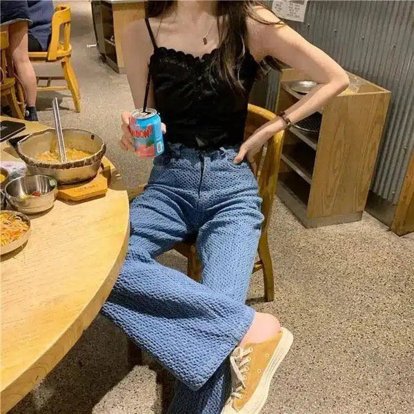 여성용 하이웨이스트 텍스처 캐주얼 팬츠