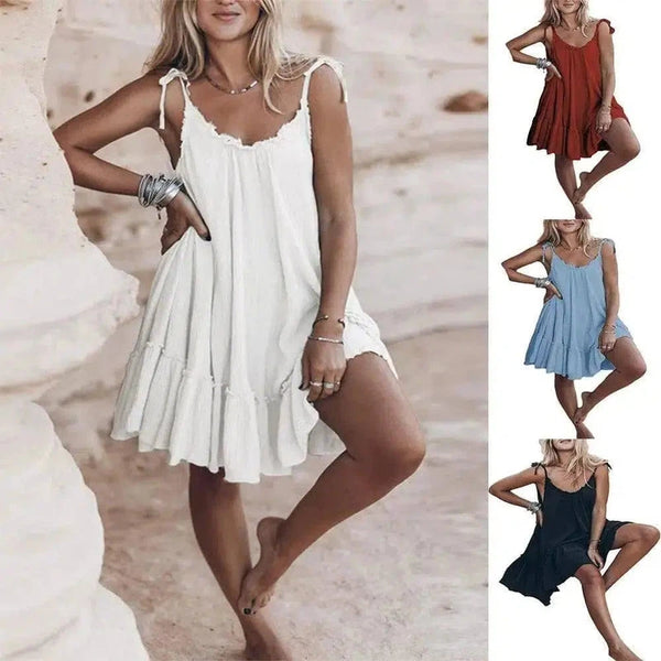 브이넥 오픈 백 캐미솔 드레스