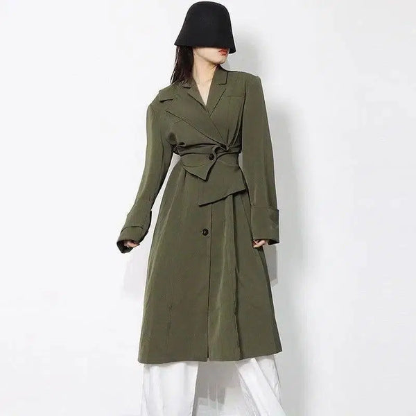 불규칙 패널 싱글 브레스티드 라펠 롱 코트