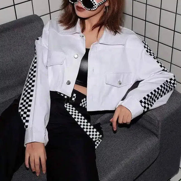 - 디자인 디테일: 소매와 벨트의 체커보드 패턴; 앞면 버튼 여밈; 가슴의 플랩 포켓
