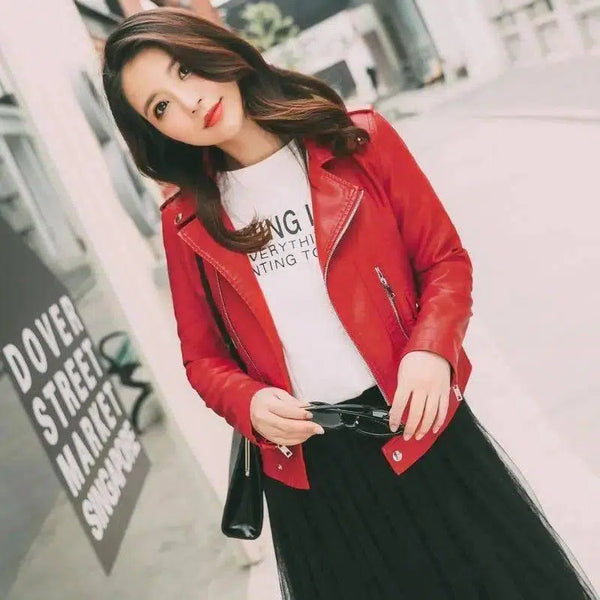 봄과 가을의 새로운 여성용 가죽 쇼트 한국어 버전의