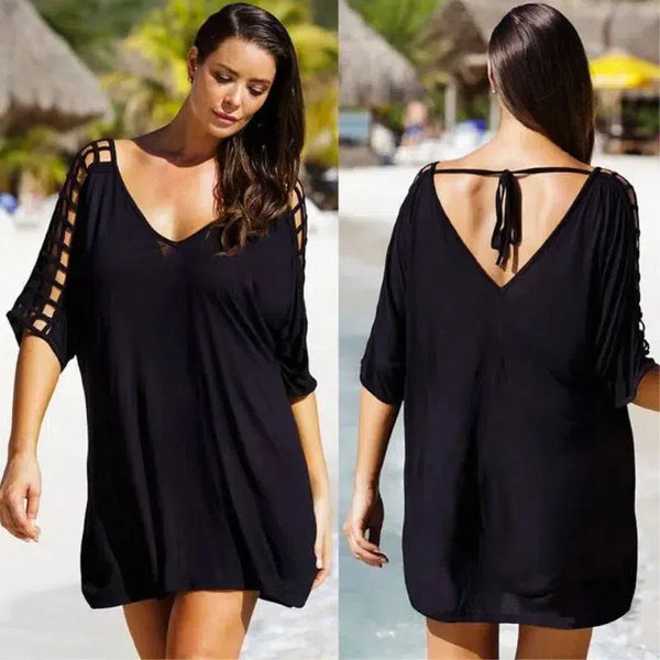 여름 플러스 사이즈 M ~ 3XL 커버 업 여성 수영복 비치 블라우스 여성 비키니 비치웨어 커버 업 블랙 드레스