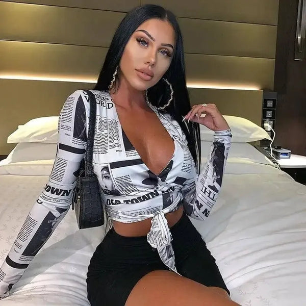 스트리트 스타일 프린트 스트랩 로우 컷 크롭탑