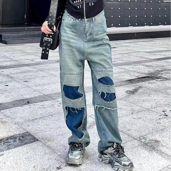 - 스타일: 모던한 찢어진 디자인의 스트레이트 팬츠