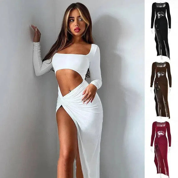 여성 의류 긴 소매 드레스 패션 중공 U 넥 스플릿 드레스 파티 웨딩