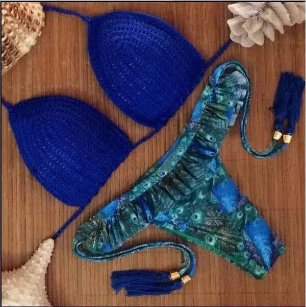 유럽과 미국의 니트 비키니 레이스 플라워 프린트 스플릿