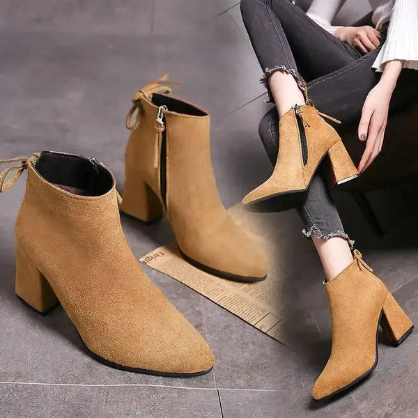 제품 설명: 유럽 및 아메리칸 마틴 부츠 포인트 하이힐 플러스