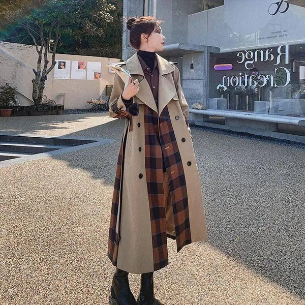 제품 설명: 체크 스티치 카키 윈드브레이커 여성용 스몰 재킷