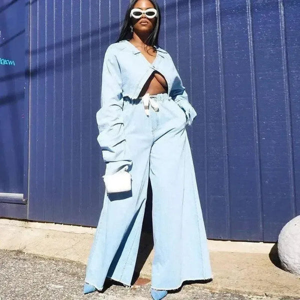 캐주얼 루즈 데님 수트 투피스 여성 의류