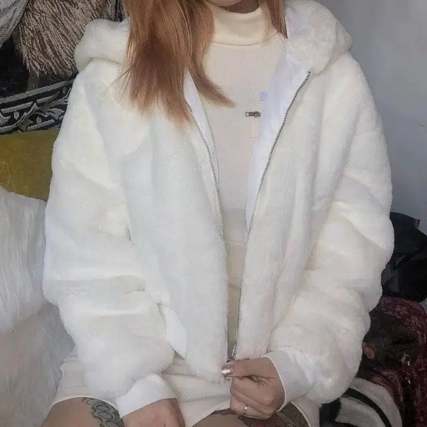 여성 캐주얼 플러시 후드 숏 플러시 코트