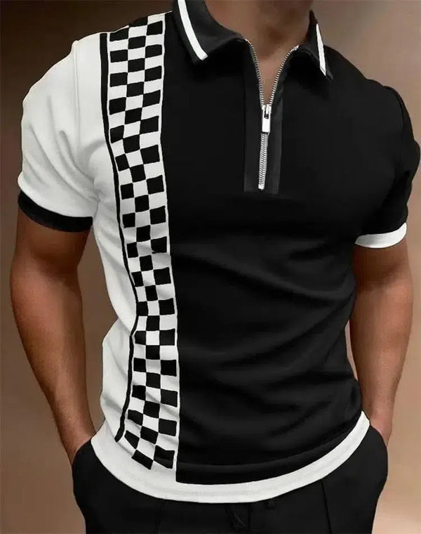 패션 루즈 라펠 캐주얼 프린트 티셔츠 지퍼 폴로 셔츠