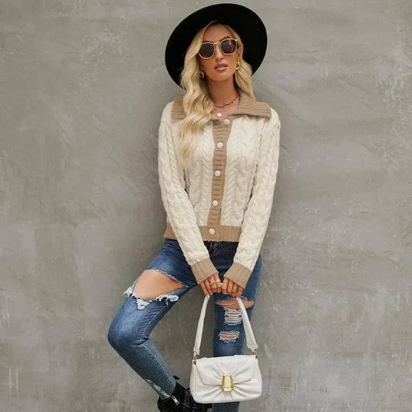 패션 쇼트 라펠 니트 카디건 싱글 브레스티드 스웨터