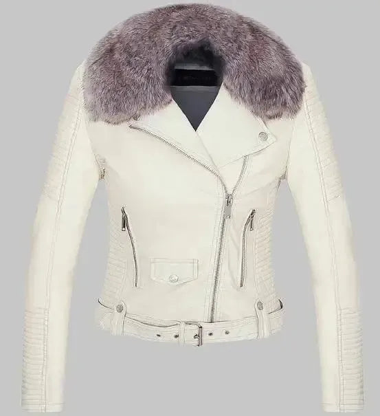 탈부착 가능한 퍼 칼라 웜 인조 가죽 재킷