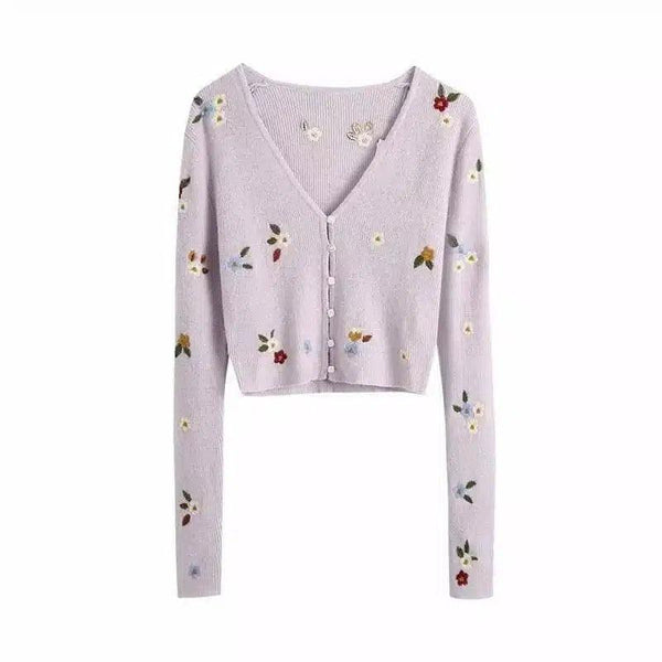 플로럴 자수 브이넥 카디건