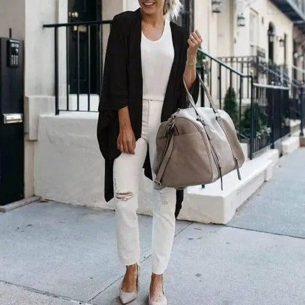 Ms 롱 루즈 불규칙한 밑단 니트 카디건 코트