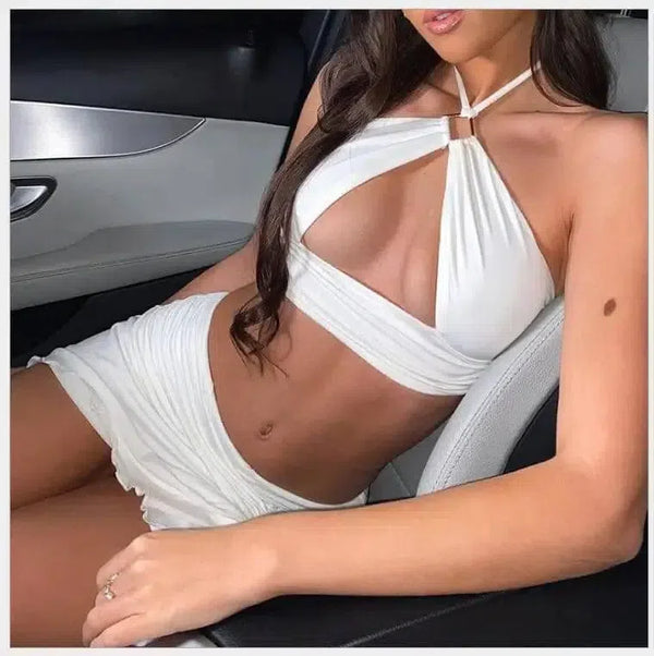 Crop Top Mini Skirts Two Piece Sets Women Halter Top