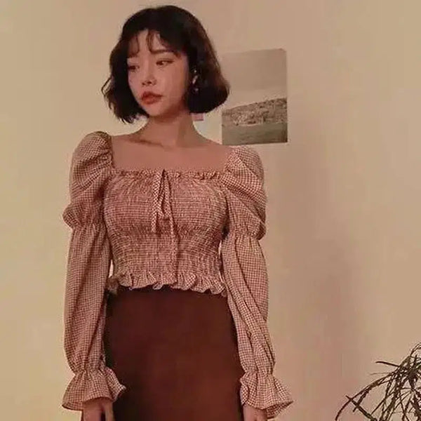Puff Sleeve Square Neck Peplum Top