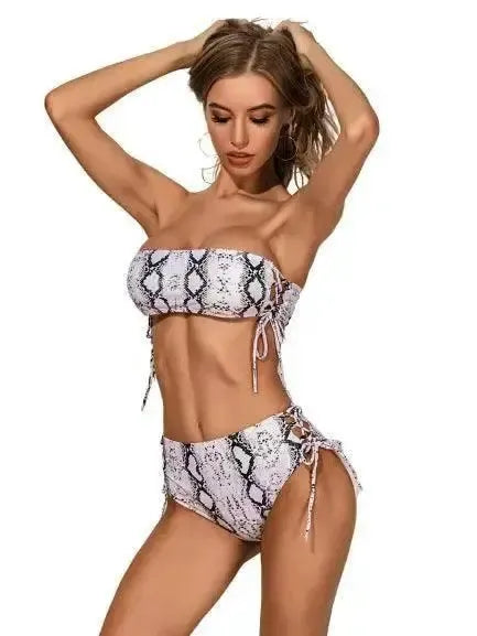 Bandeau snake print bikini
