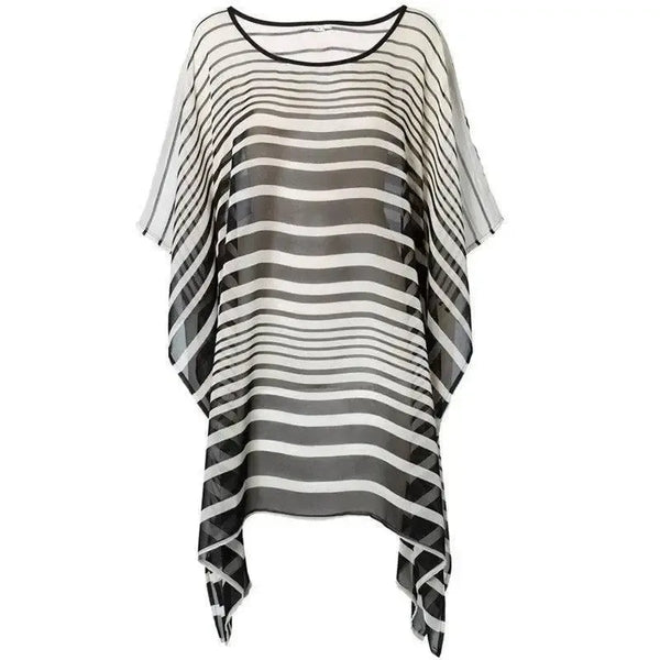 Chiffon Black And White Striped Loose Beach Skirt Bikini