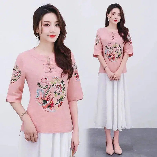 Transform your look with our elegant cheongsam top, showcasing exquisite embroidery that beautifully blends tradition with modern flair.