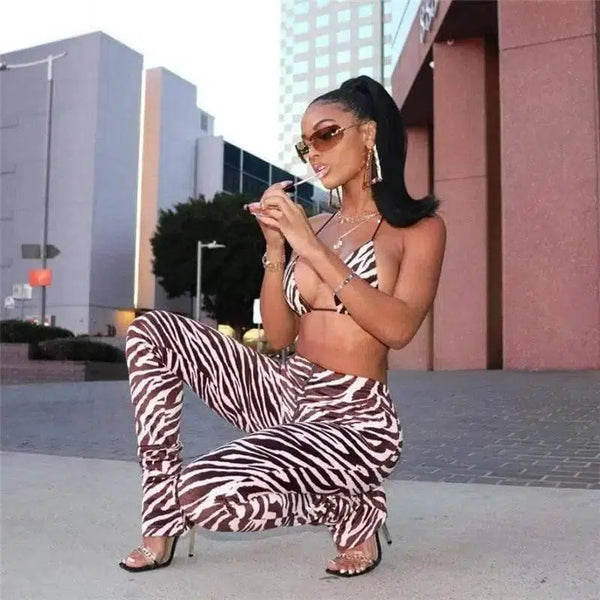 Contrast Color Lace Halterneck Vest Trousers Camouflage