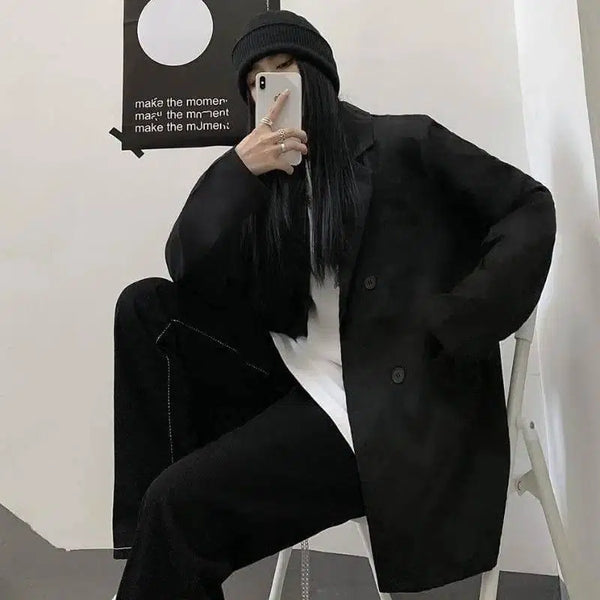 Harajuku Style Suit Collar Loose And Versatile Long-sleeved